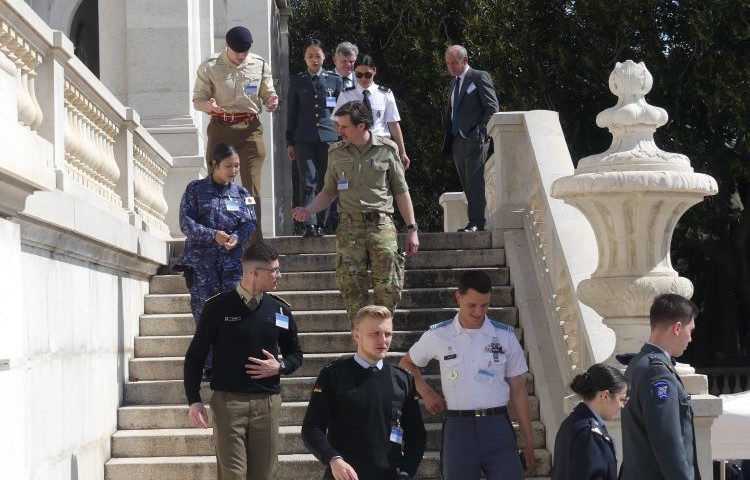 Kl. 08.00 mandag stiger vi op mellem palmerne i haven foran instituttet mellem delegationer fra andre militærakademier i dress uniforms. De retter ind på formation ved den hvide marmortrappe. Lidt overraskede enkadrerer vi hastigt noget, der ligner en spredt orden. På terrassen uden for den bløde renæssancefacade mødes vi af en international kakofoni af farverige uniformer. Der netværkes allerede kraftigt. Vi smider hovedbeklædningen, da kadetnæsen hurtigt snuser, at området synes at være reglementeret hattefrit. Ikke to nationers hovedbeklædning ligner i øvrigt hinanden; en overraskende designmæssig triumf i lyset af, at 27 militærakademier fra 16 nationer er repræsenteret i årets konkurrence.