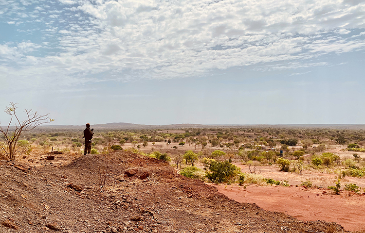 Foto: En enlig Malisk soldat fra Nationalgarden overvåger området omkring Yanfolilla i Bougoniprovinsen i det Sydlige Mali på grænsen til Guinea. Foto: Privat