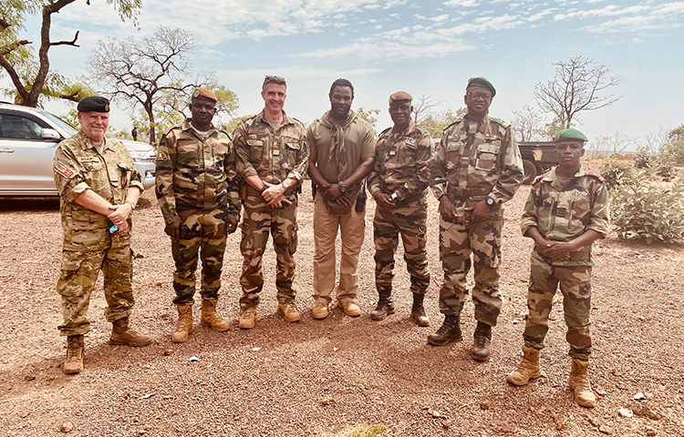 Foto: Der er et tæt dansk-fransk samarbejde imellem forsvarsattachéen og den franske rådgiver, oberstløjtnant D. Poplineau, i kapacitetsopbygningen af Malis Nationalgarde. Her samlet ved et besøg ved kasernen i Yanfolilla i Bougoni-provinsen i det Sydlige Mali. Foto: Privat